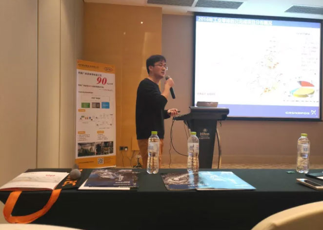 会议由格兰富水泵工程师王雍恺主持,销售经理肖飞与应用工程师李云校对格兰富水泵公司以及产品做详细的介绍,回顾2016年-2017年格兰富水工业的业务发展情况。
